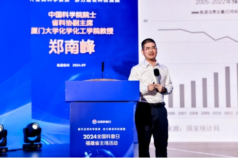 9月20日,2024年“全国科普日”福建省主场活动启动仪式在福州举办。中国科学院院士、嘉庚创新实验室主任、厦门大学化学化工学院郑南峰教授入选福建省第七批“闽江科学传播学者”。他还应邀参加新质生产力科普专项行动,作题为《氢能产业发展面临的机遇与挑战》的科普报告。