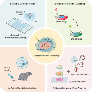 杨朝勇教授/林世超副研究员团队应邀撰写的综述性论文“Metabolic RNA Labeling-Enabled Time-Resolved Single-Cell RNA Sequencing”于近日在线发表在美国化学会旗下刊物Accounts of Chemical Research(DOI:10.1021/acs.accounts.6c00010),系统介绍了团队近年来在RNA代谢标记赋能的时间分辨单细胞转录组测序领域的阶段性研究成果,并提出了未来的发展方向。